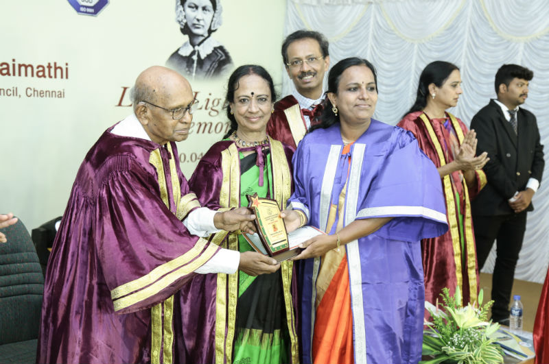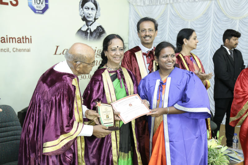 Graduation was conducted with the felicitations of Dr. Duraisamy and Dr. Shanthi Duraisamy. The chief guest Dr, Shirley David enlightened the audience with the convocation address.